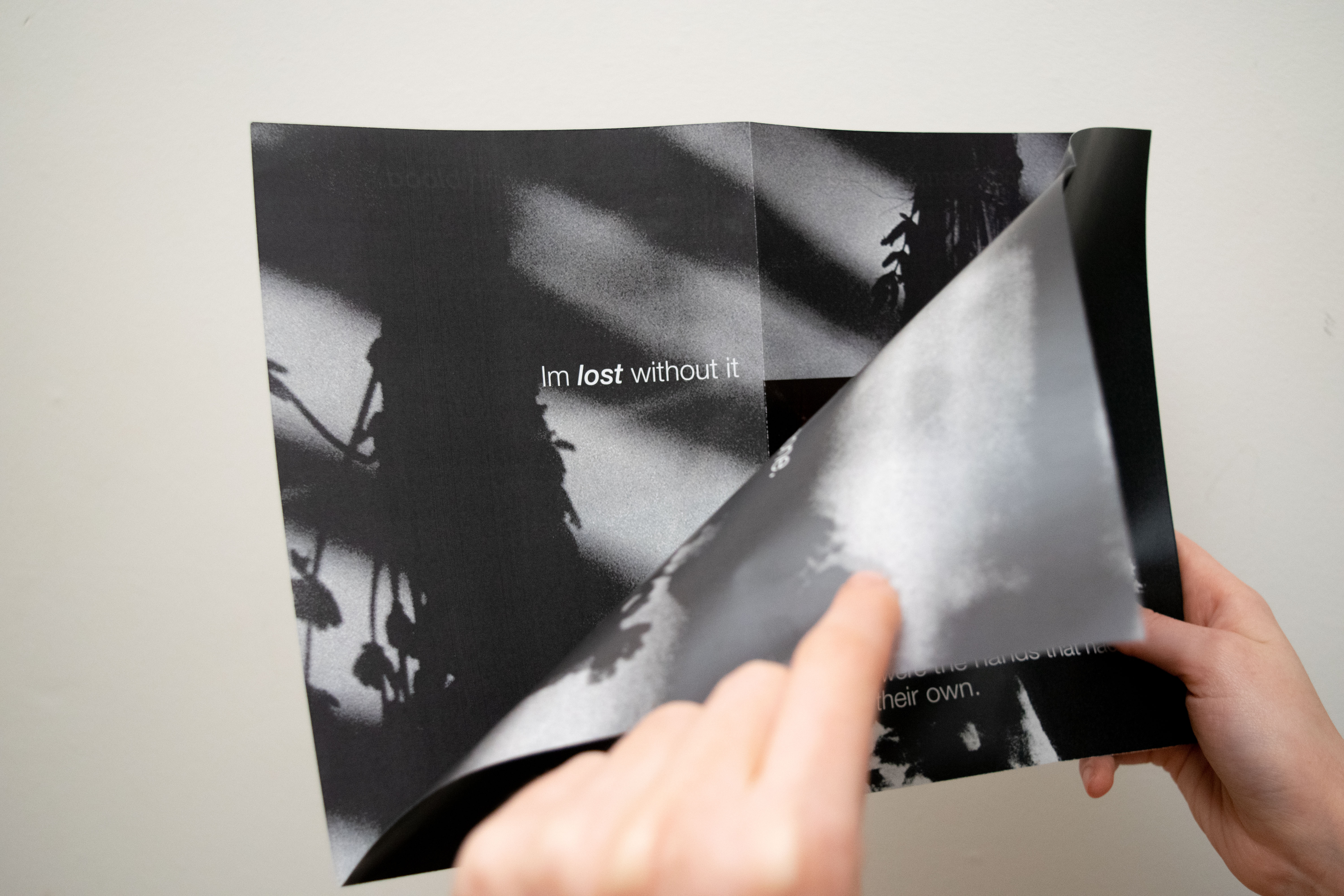 Three double sided posters exploring the narrative
